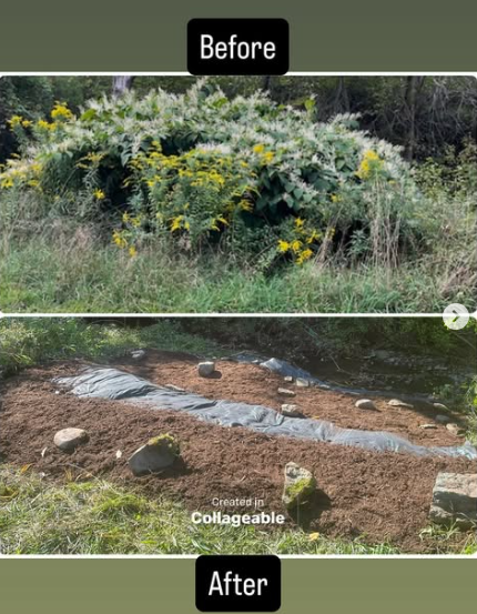 We use various mechanical methods to remove invasive plants. Our specific approach depends on the type and characteristics of the invasive plant species present. We do not use any harmful herbicides. Key methods to our non-chemical approach include thorough removal of invasive plants, heavy smothering of impacted areas with materials such as heavy duty weed barrier fabrics, cardboard, and mulch, and then ongoing maintenance of the site for at least 1-2 years.